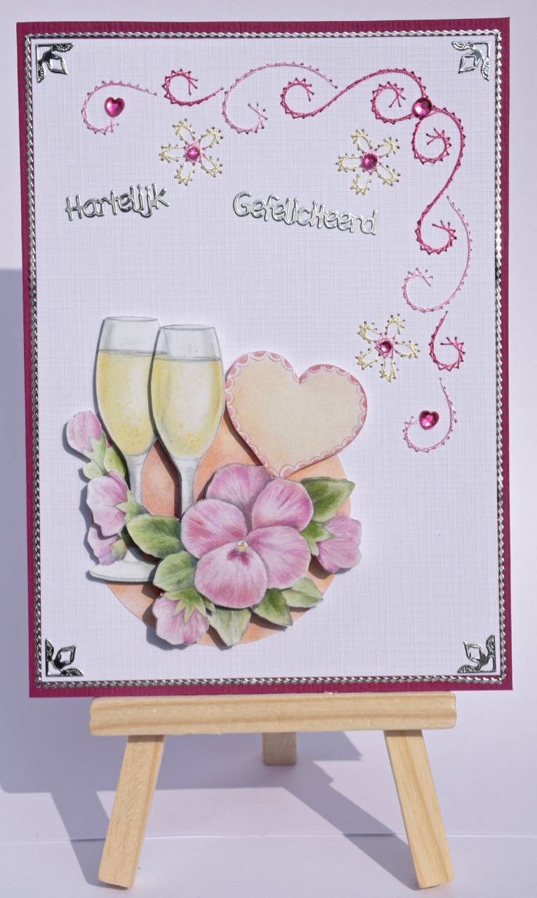 Met mijn vriendin Anita, die mij het kaarten borduren en 3D knippen heeft aangeleerd freubelen we heel wat uurtjes af. Zo is er voor mij een nieuwe hobby geboren, super leuk en ontspannend om te doen en je houdt er ook nog iets moois aan over. Wist niet dat ik zo creatief zou zijn. Vind het zelf erg leuk om bijvoorbeeld een kaart samen met een bos bloemen of een fles wijn om te toveren tot een mooie cadeautje.